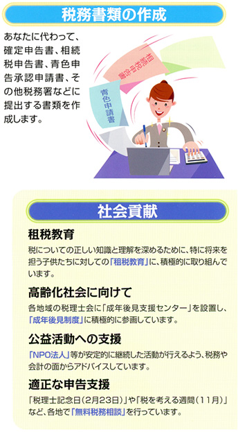 税理士は、公正な立場で税金についてご相談に応じ、税務書類を作成し、納税者の皆様のために責任を持って税務の代理をします。